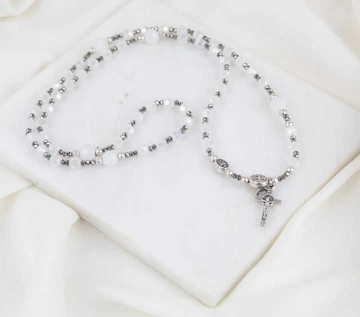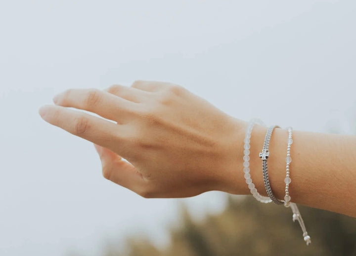 My Saint My Hero Be Still Prayer Bracelet Frosted Quartz