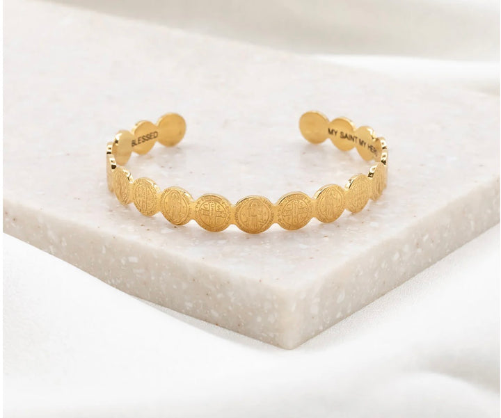 My Saint My Hero Benedictine Blessing Gold Rim Necklace