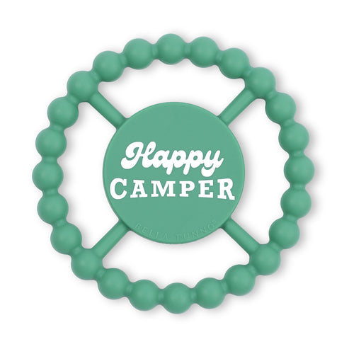 This baby teething toy is a silicone teether that will soothe sore gums and provide sensory stimulation. It was designed with one thing in mind: teething relief for baby that translates into peace and quiet for parents. The silicone beaded material provides an attractive texture for mouthing and teething. The Happy Teether is easy to grip from any angle and gives the right amount of resistance to provide pain relief for early teeth.