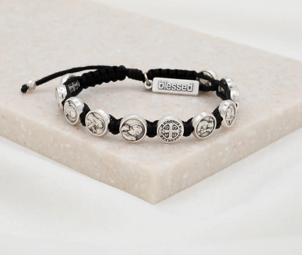 - 10 silver-tone saint medals and our signature "blessed" tag