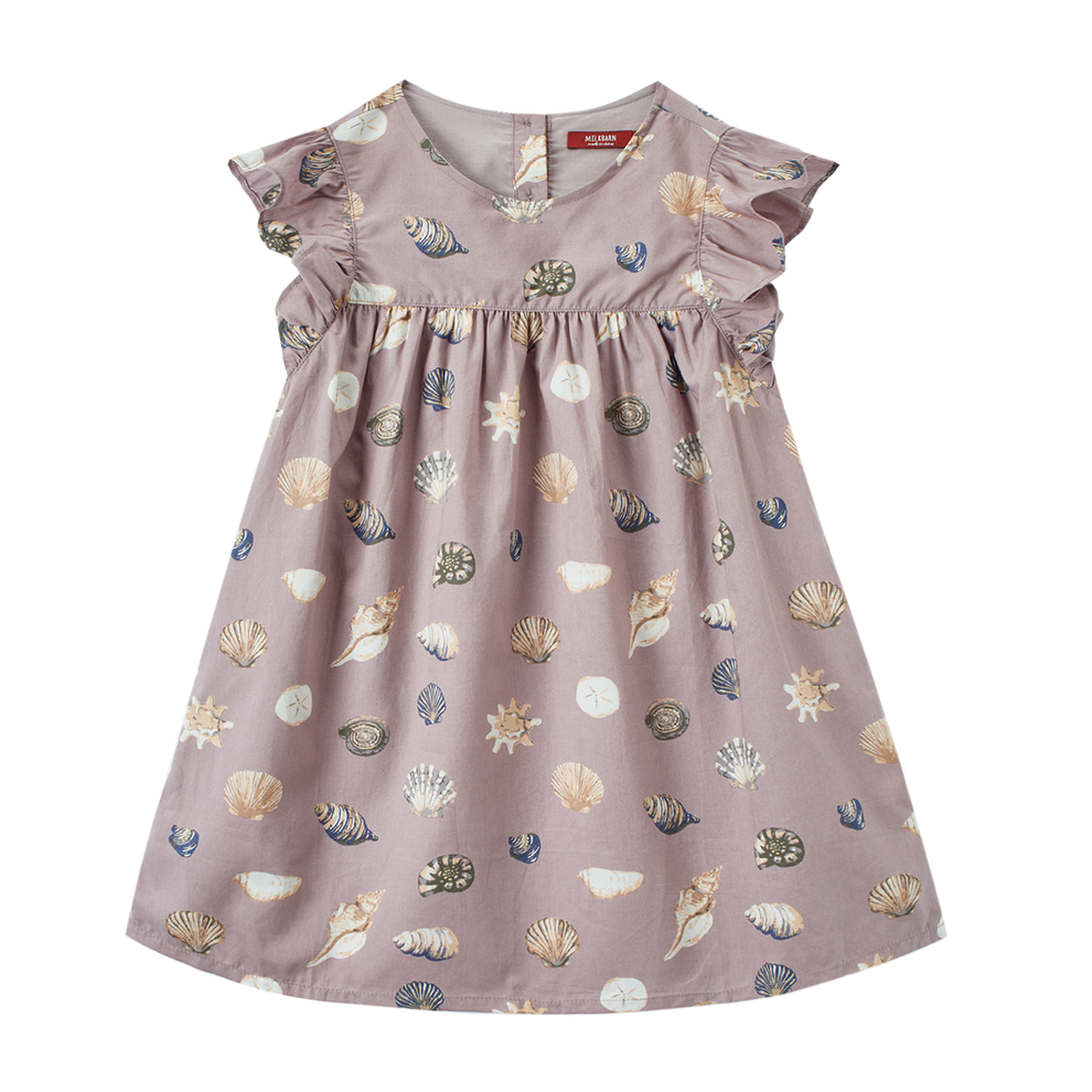 “Purple Seashells” Butterfly Sleeve Ruffle Dress